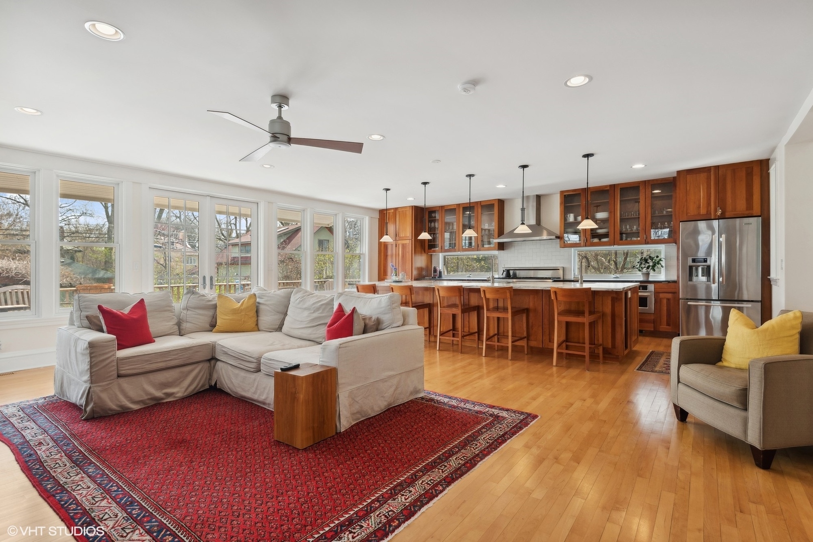 Stunning NE Evanston Victorian expanded and completely renovated. Over 5,000 square feet of living space. Designed by GYH architects to bring light in throughout the home. An open floor plan with modern conveniences, clean lines, and windows abound. Many original features were restored to function such as the interior front banister, door hardware, pocket doors, and more. Chef's kitchen is elevated for those who like to cook or entertain. The kitchen features a stainless Thermador 6 burner double oven and industrial grade hood, an impressive island with dual sinks the most beautiful veined marble, custom-designed cherry cabinets, and a built-in custom bar to complement the circular flow. An exposed wide staircase connects the original home to the new and brings you to a spacious second floor that hosts 4 bedrooms. The current owner has opened up the floor plan to combine bedrooms 3 and 4 to create a dynamic space. The east-facing primary bedroom expands the entire width of the house and captures light throughout the day and star gazing at night complete with a gas fireplace. Primary bathroom with double vanity sinks, a separate soaking tub, and a seamless shower. Bedroom features 2nd-floor laundry and a walk-in closet. The charming third floor is ready for anything from a yoga studio to a guest suite complete with a full bathroom. Full-finished basement with a half bath and tons of storage. Living room with custom built-ins and gas fireplace. All bathrooms are complete with Toto, Kohler, and high-end custom tile. Extra-long lot measuring 50x211 with a sensational garden to watch bloom throughout the year. Large teak deck along the back of the house and an automatic garage designed to appear as an English cottage. 2011 renovation and addition includes all systems and mechanicals including new plumbing, dual zone HVAC, drain tiles and dual sump pumps, majority of windows, roof and much more. The location is within walking distance to the lake, transit, and shopping. Orrington school district and close to Northwestern.